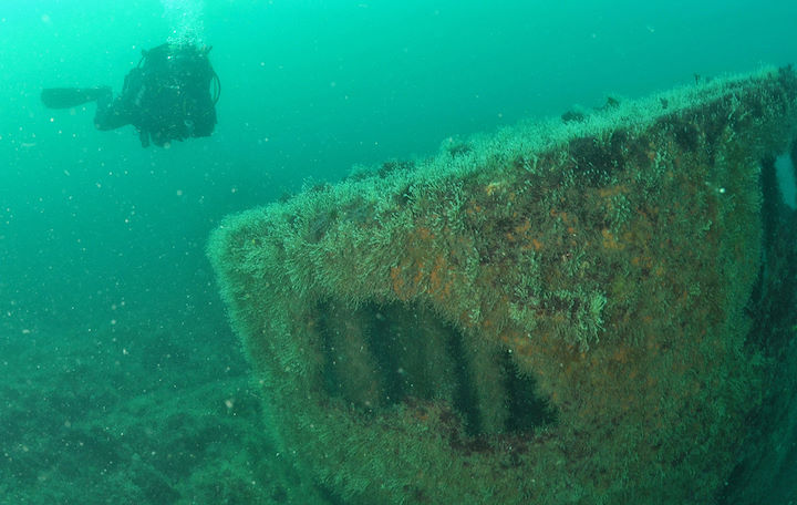All that remains of the wreck today are her boilers, prop shaft, ribs and a few other artefacts scattered over a rocky seabed.